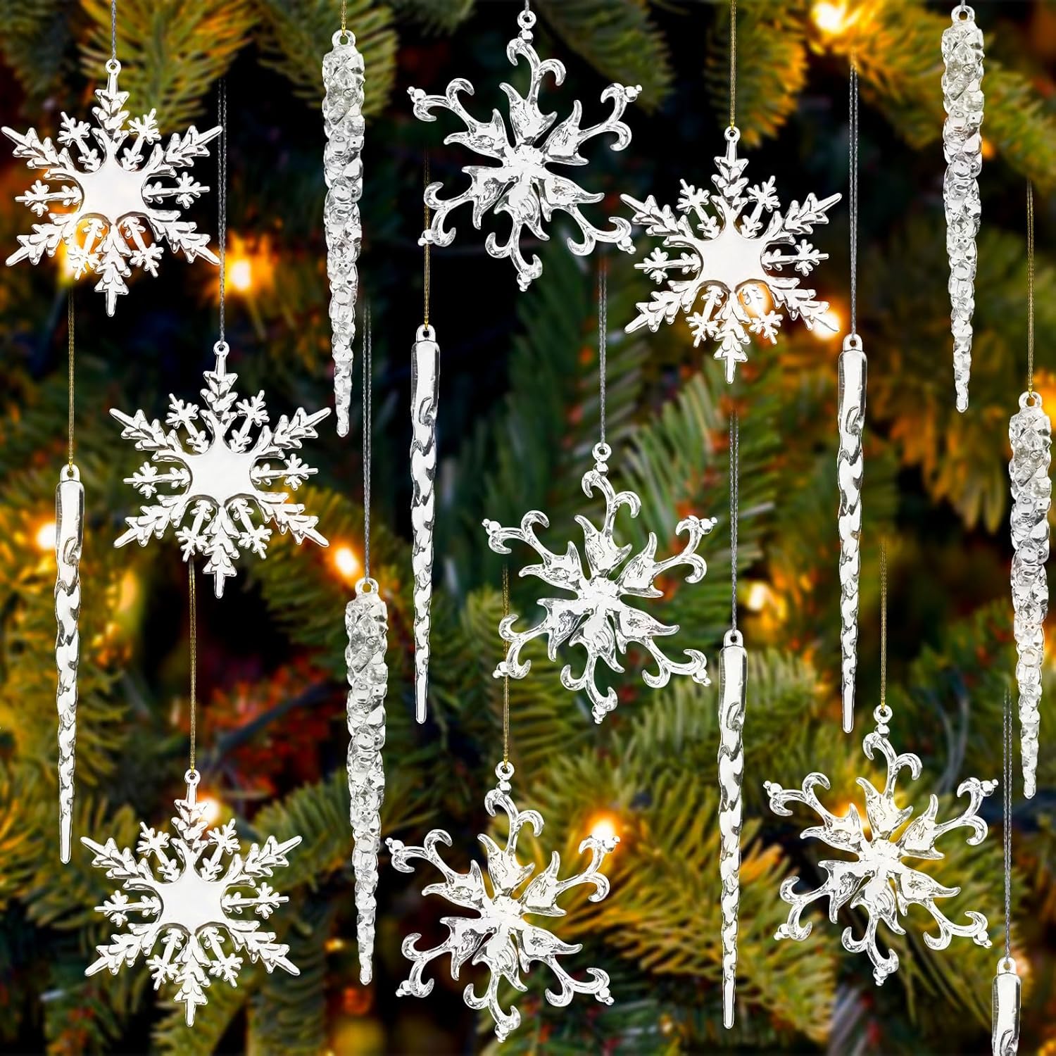 ❉Shatterproof and Shiny:these icicles and snowflakes are made of acrylic,safe for children and pets,will catch all the sparkling lights on your Xmas tree.